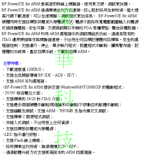模擬器‧發展系統 > ARM模擬器 > BF-ICE for ARM 高速即時線上模擬器