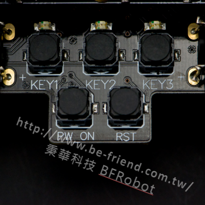 ●重啟按鍵;使小車的程式重新執行。 ●電源開關按鍵:開關小車電源。