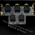 ●紅外線接收管:接收紅外線發射管發射出的紅外線信號 ●按鍵:用於輸入信號給小車,以控制小車。